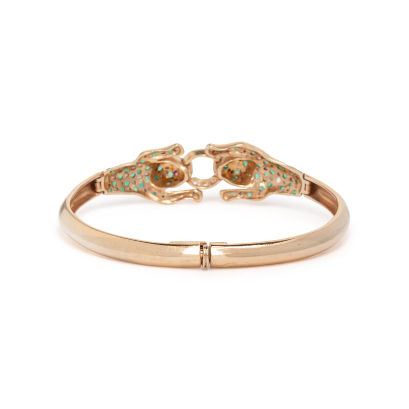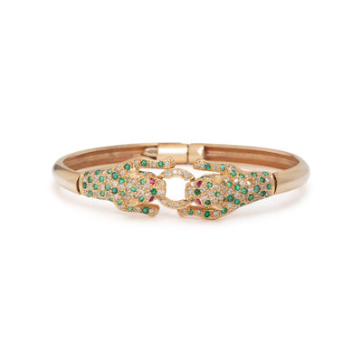 DIAMOND, EMERALD, AND RUBY LEOPARD BANGLE BRACELET