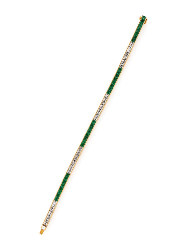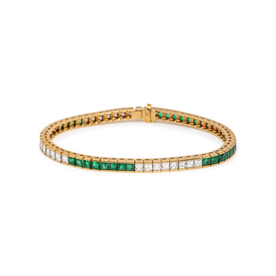 YELLOW GOLD, DIAMOND, AND EMERALD BRACELET