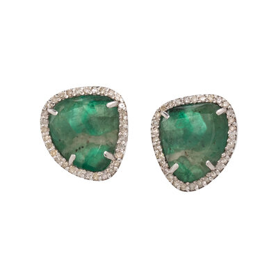EMERALD SLICE AND DIAMOND EARRINGS