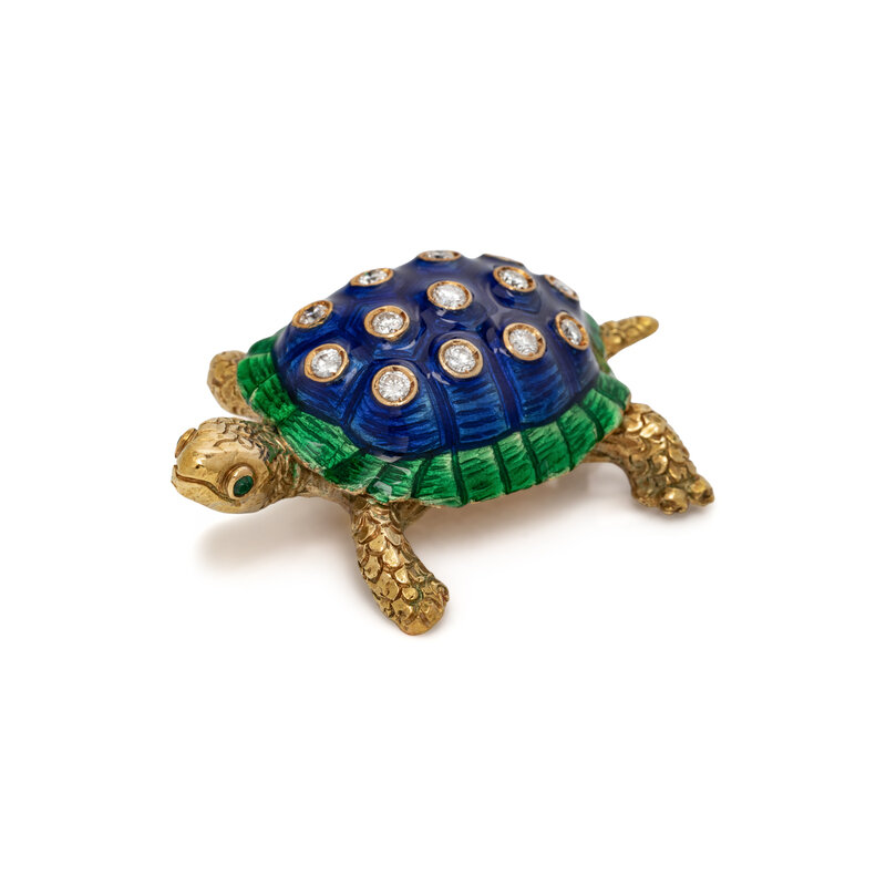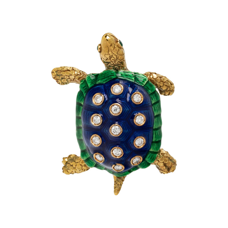 DIAMOND AND ENAMEL TURTLE BROOCH