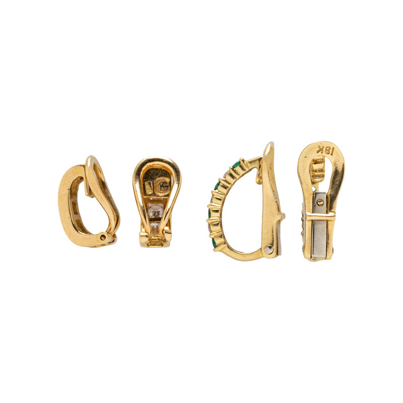 Emerald earrings stamp: 18K (maker's mark).