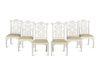 A Set of Six Chinese Chippendale Style Dining Chairs