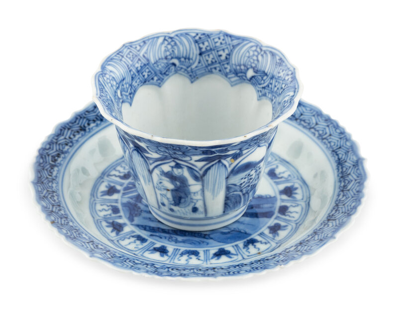 A Chinese Export Blue and White Porcelain Cup and Saucer