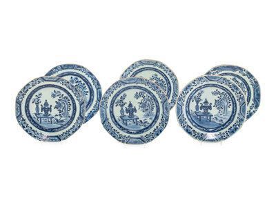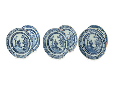 A Set of Six Chinese Export Blue and White Porcelain Plates