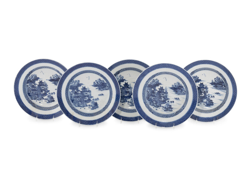 A Set of Five Chinese Export Blue and White Porcelain Soup Plates