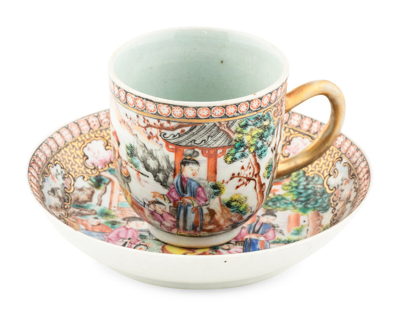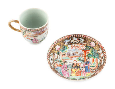 A Chinese Export Famille Rose Porcelain 'Mandarin' Cup and Saucer