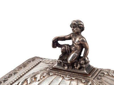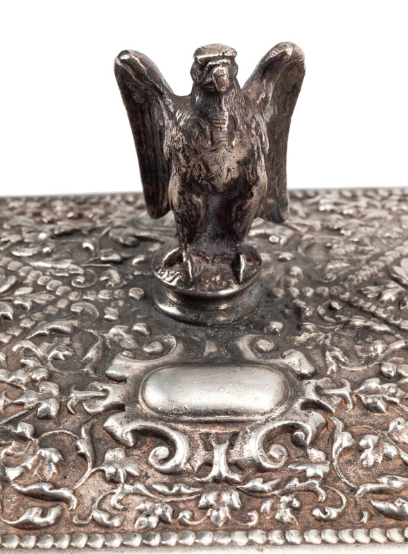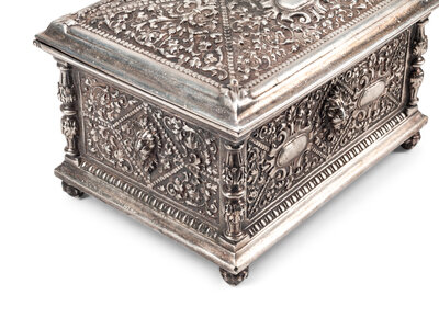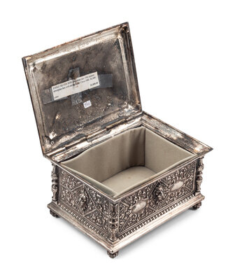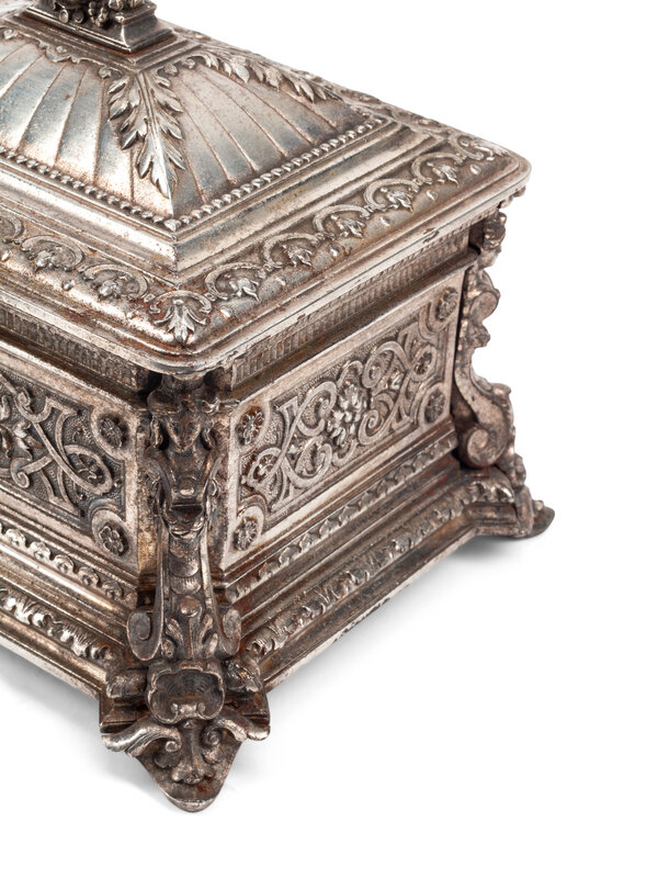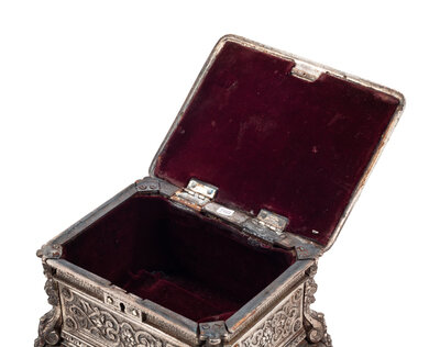 Height of larger casket 8 x width 8 ¼ x depth 6 ¼ inches.