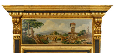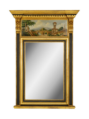 An Italian Parcel Gilt and Ebonized Trumeau Mirror