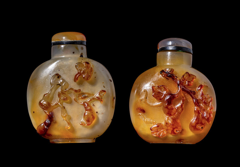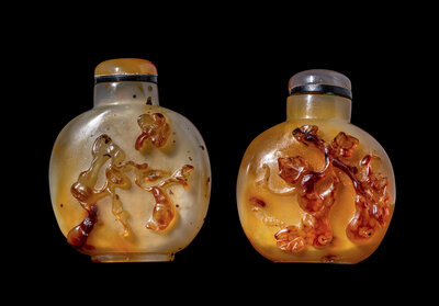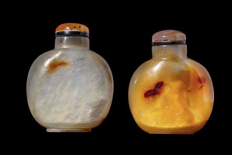 Two Chinese Carved Agate Snuff Bottles