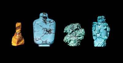 comprising a tiger's eye example and three turquoise examples.