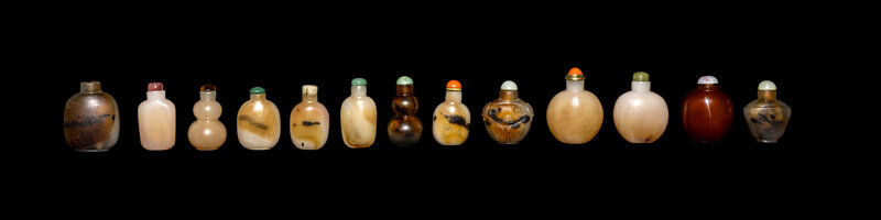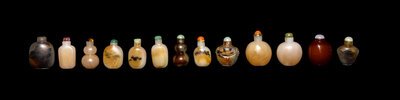 13 Chinese Glass Imitating Agate Snuff Bottles