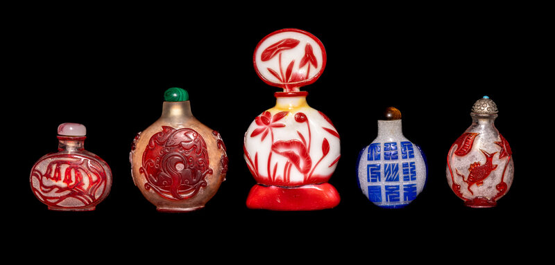 Five Chinese Colored Overlay Glass Snuff Bottles
