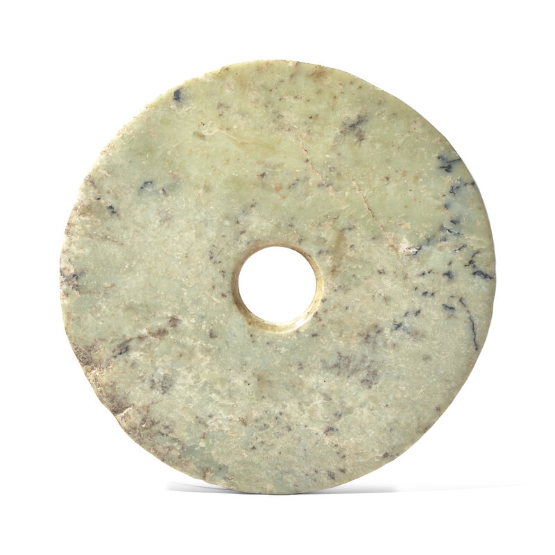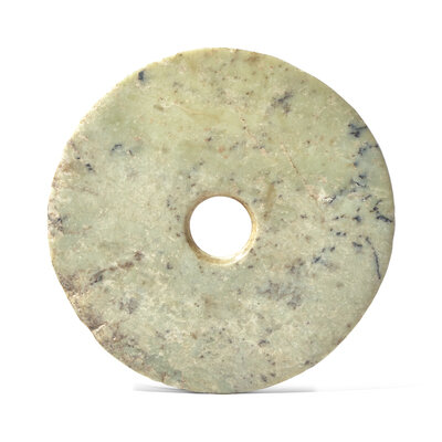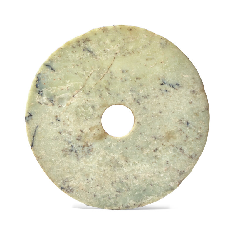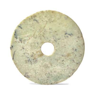 A Chinese Archaistic Mottled Pale Green Jade Bi Disc