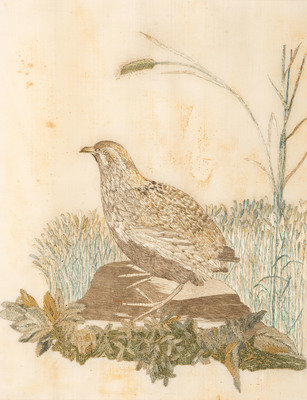 silk and chenille threads on silk ground.