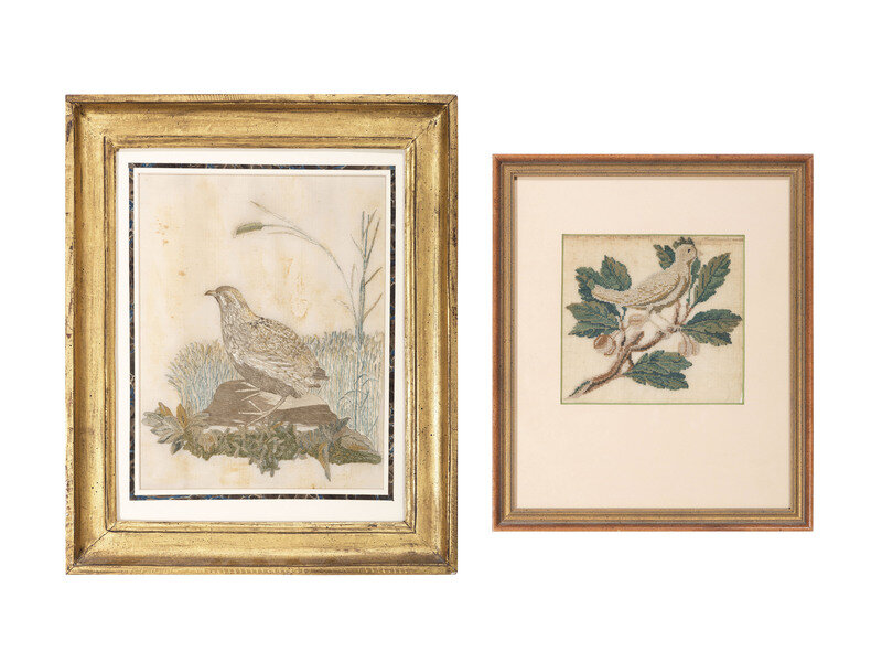 Two Needlework Embroidered Pictures with Birds