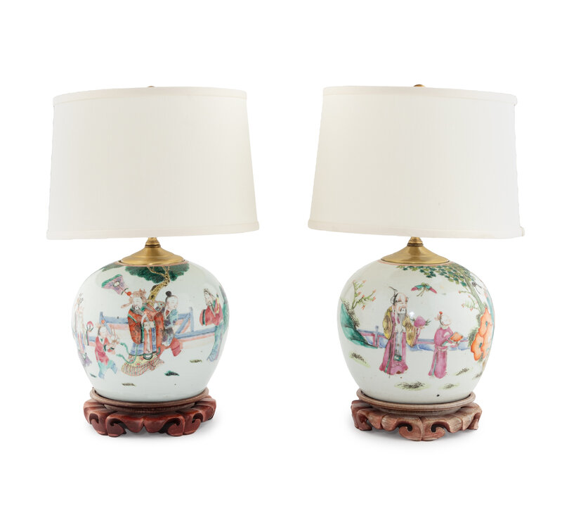 A Pair of Chinese Porcelain Jars Mounted as Lamps