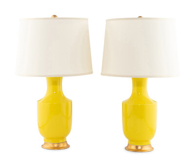 A Pair of Yellow Glazed Porcelain Lamps