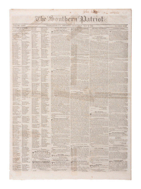 [TEXAS REVOLUTION] Charleston Southern Patriot. Vol. XXXV, No. 56,589. Charleston, SC: 12 May 1836