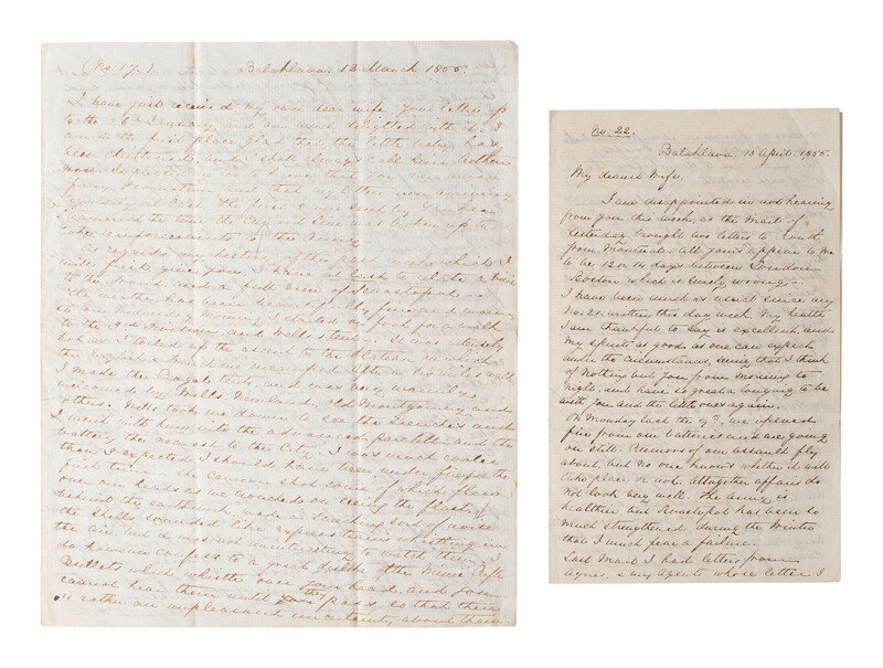 [CRIMEAN WAR]. Two letters from a British soldier during the Crimean War. "Balaklava," 1855.