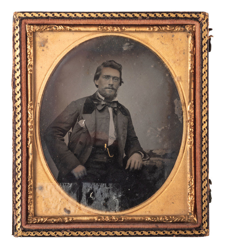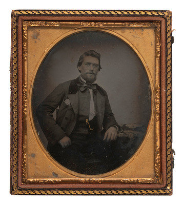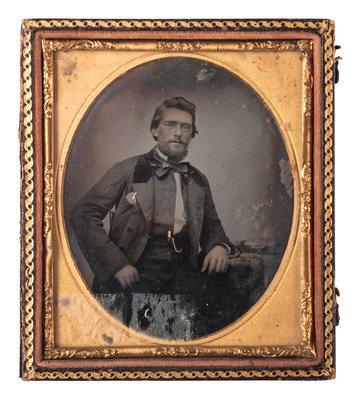 [CIVIL WAR]. Sixth plate ambrotype featuring a middle-aged Confederate soldier.
