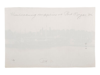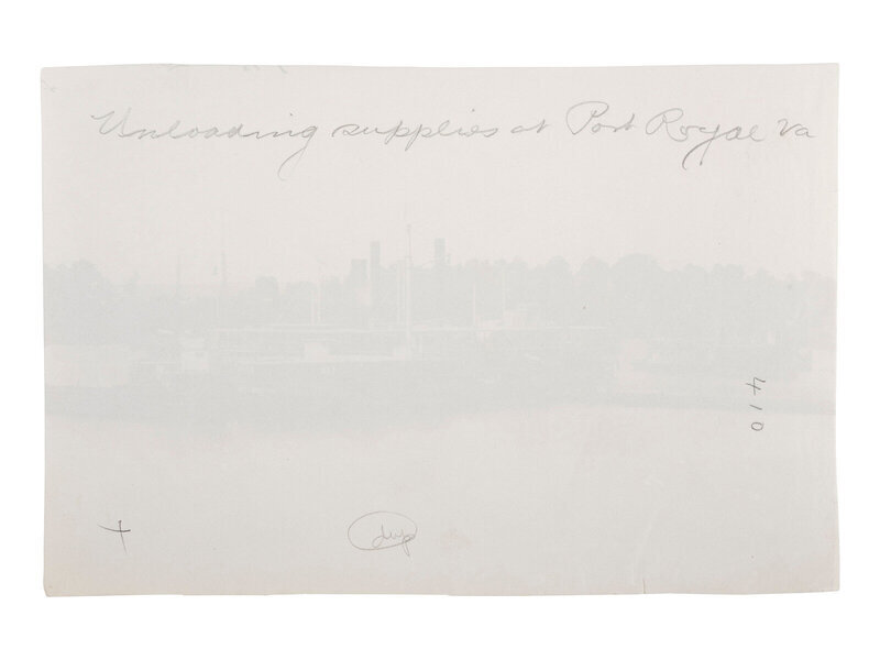 Unloading Supplies at Port Royal, Virginia. 1861-1865. 5 5/16 x 7 15/16 in. albumen print (few light creases, light edge wear). Verso annotated in pencil.