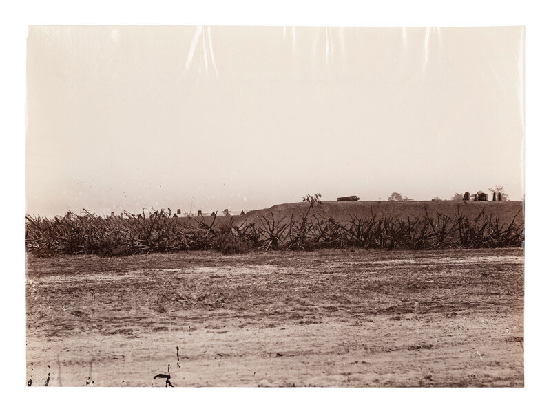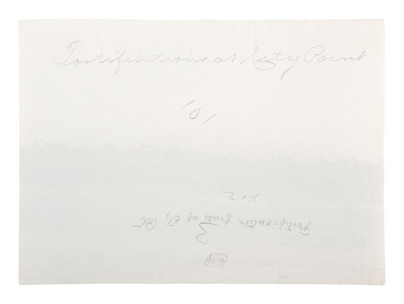 Photographer unknown. Fortifications at City Point, Virginia. 1861-1865. 6 1/4 x 8 5/8 in. albumen print (some creasing and edge wear). Verso annotated in pencil. Although uncredited, the photograph may have been taken by Mathew Brady.