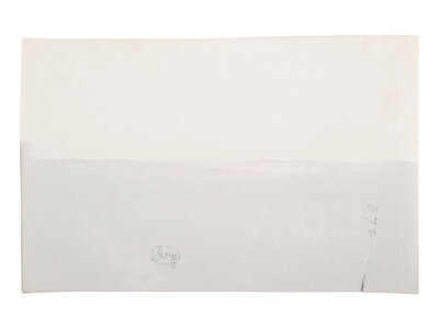 Photographer unknown. Landscape with unidentified army encampment in the distance. 1861-1865. 5 1/8 x 8 in. albumen print (3/4 in. tear to lower left edge). Verso annotated in pencil.