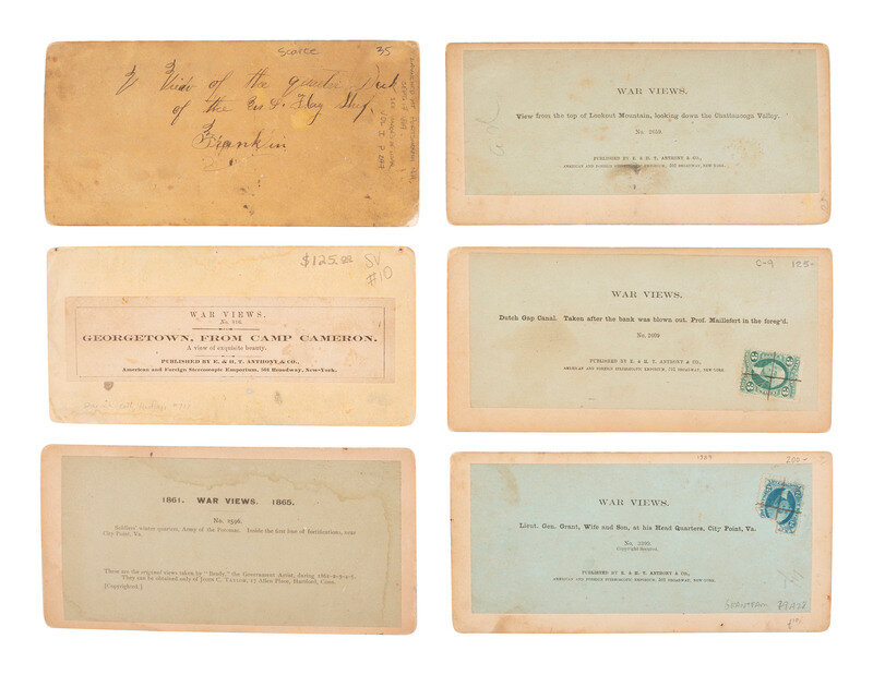 Lot comprised of 6 stereoviews, most with applied paper label on verso with "War Views" series title, image title, and credit to E. & H.T. Anthony, New York.