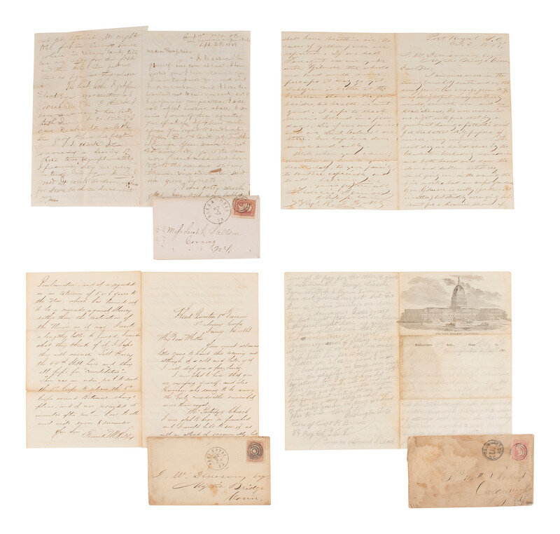 Letters include the following 8 identified soldiers' letters: "Head Quarters 1st Division / 5th Army Corps," 14 January 1863, Frank M. [?] Kelley, writing to his parents about ongoing war activity and expressing concern about the issuing of the Emancipation Proclamation possibly extending the war "which has turned out to be a crusade against Slavery rather than the restoration of the Union as it was...." -- Camp Lafayette, Uniontown Pa," 4 October 1861, Private Isaac R. Beazell, Co. G, 12th Pennsylvania Infantry, discusses regimental drills. -- "Army Hospital / Annapolis," 29 December 1864, possibly Theodore Morgan, New York 16th Heavy Artillery, writing from the hospital he relays that he had been "all over the dam rebel confederacy" and was "Seven months prisner" when 3,000 took the oath to the CSA. -- "City Point VA," 21 February 1865, Samuel G. Rigby, Co. L, 15th New York Engineers, a patriotic letter to his aunt. -- "Annapolis Junction," 12 February 1863, Charles Engle, Co. B, 137 New York Volunteers, a general letter to his cousin. -- "Headquarters 89 Regt. NYSV Camp Clay Co. F," Washington, D.C., 29 December 1861, Private Almond Reed, writes of a visit to the Smithsonian and other news. -- "Camp 19th NY VC / near Warren Junction," 22 Sept [?] 1863, Lt. O.W. West [?], with description of guns, horses, and burning fields. -- "Port Royal, S.C.," 2 October 1863, Frederic Denison, Chaplain, Rhode Island 3rd Heavy Artillery, with naval content, blockade of Charleston and Savannah.