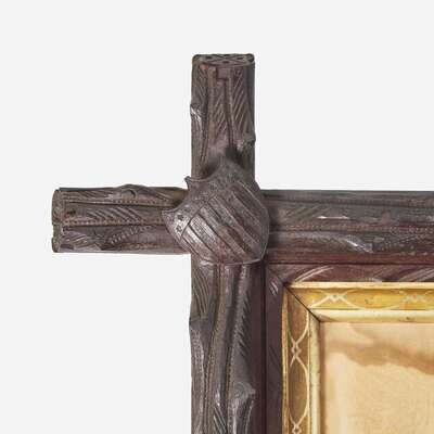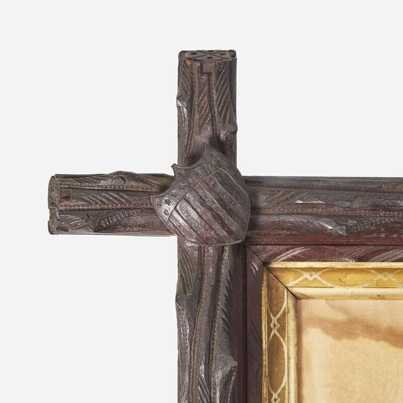[CIVIL WAR]. Folk-art carved frame with discharge for Massachusetts soldier Charles Clark, ca 1865.