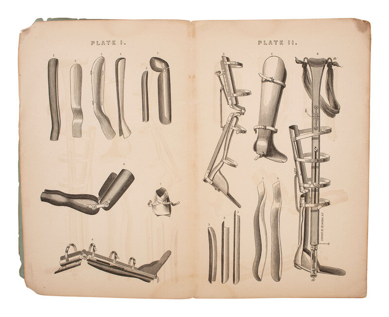 [With:] WELCH, Benjamin. Circular No. II. Surgeons' Splints and Improved Apparatus for Fractures. New York: Pudney & Russell, 1858. 9 x 5 3/4 in. circular with paper wrappers (loss to spine, upper and rear wrappers separated at spine, title page partially separated from spine with few tears to left margin). Provenance: C.H. Crane (named inscribed on front wrapper). -- Regulations for the Medical Department of the C.S. Army. Richmond: Ritchie & Dunnavant, 1863. 6 3/4 x 4 1/2 in. booklet with paper wrappers, 76pp (staining throughout, edge and corner wear including loss las page (p. 76).