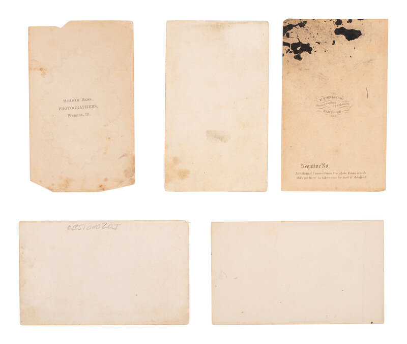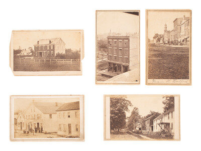 [EARLY PHOTOGRAPHY]. 12 CDVs of Civil War-era businesses and residences, incl. photography studio.
