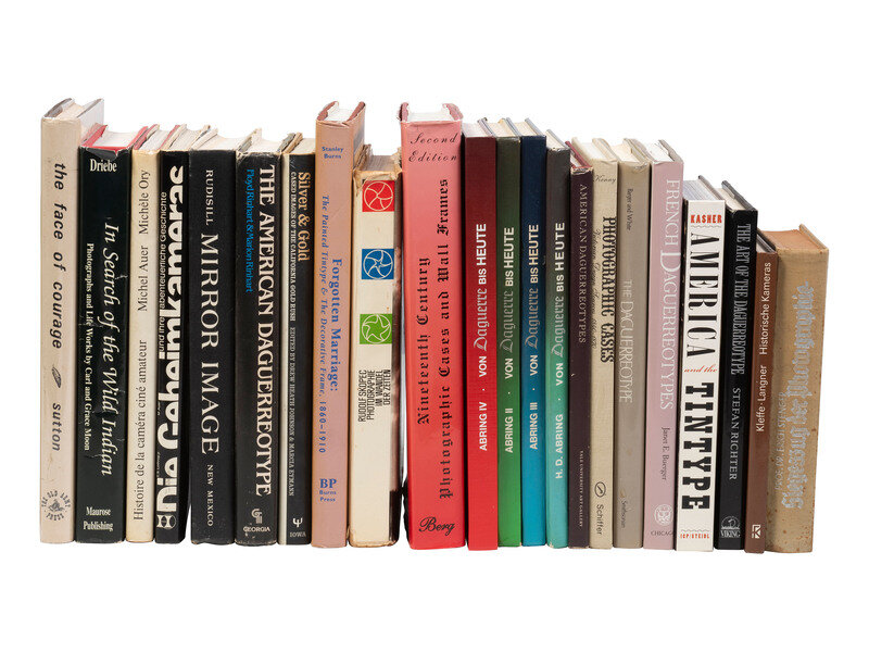 Titles include: Silver and Gold: Cased Images of the California Gold Rush (Drew Heath Johnson & Marcia Eymann). -- The American Daguerreotype (Floyd Rinhart & Marion Rinhart). -- Forgotten Marriage: The Painted Tintype & The Decorative Frame 1860-1910, A Lost Chapter in American Portraiture (Stanley B. Burns, M.D.) -- In Search of the Wild Indian: Photographs and Life Works by Carl and Grace Moon (Tom Driebe). -- The Face of Courage: The Rinehart Collection of Indian Photographs (Old Army Press). -- Mirror Image: The Influence of the Daguerreotype on American Society (Richard Rudisill). -- America and the Tintype (Steven Kasher). -- French Daguerreotypes (Janet E. Buerger). -- Historiche Kameras (Kleffe Langner). -- Siegeszug Der Photographie in Kultur, Wissenschaft, Technik (Prof. Dr. Erich Stenger). -- Von Daguerre Bis Heute (Vols. I-IV). -- Nineteenth Century Photographic Cases and Wall Frames. Second Edition (Paul K. Berg). -- And 11 others.