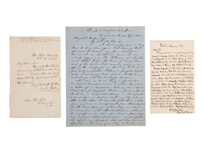 TAPPAN, Mason (1817-1886). One page ALS ("M.W. Tappan"). Washington, DC, 6 December 1856. Addressed to a "Capt. John Salter" of Portsmouth, NH. In full: "My Dear Sir: Yours of the 3d inst. covering Petition &c has been rec'd. I will take an early opportunity to present it to the House." Tappan was elected to Congress as a Know Nothing (or American) Party representative and thereafter as a Republican representative, serving from 1855-1861. He also served as Colonel of the 1st New Hampshire Infantry Regiment during the first year of the Civil War.