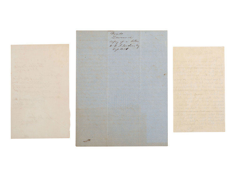 PLUMMER, Charles Henry. 3pp, on bifolium. Copy ALS ("C.H.P."), Lawrence, MA, 3 September 1855. Addressed to George F. Gordon, Esq. Letter with heading reading "Private & Confidential," and with instructions to "burn it up" once read. Rev. Plummer writes that he is being considered as a candidate for Congress, and wants his recipient to write a letter as a correspondent from Philadelphia presenting Plummer's "uniform Native-Americanism," as Plummer believes this will bolster his candidacy.