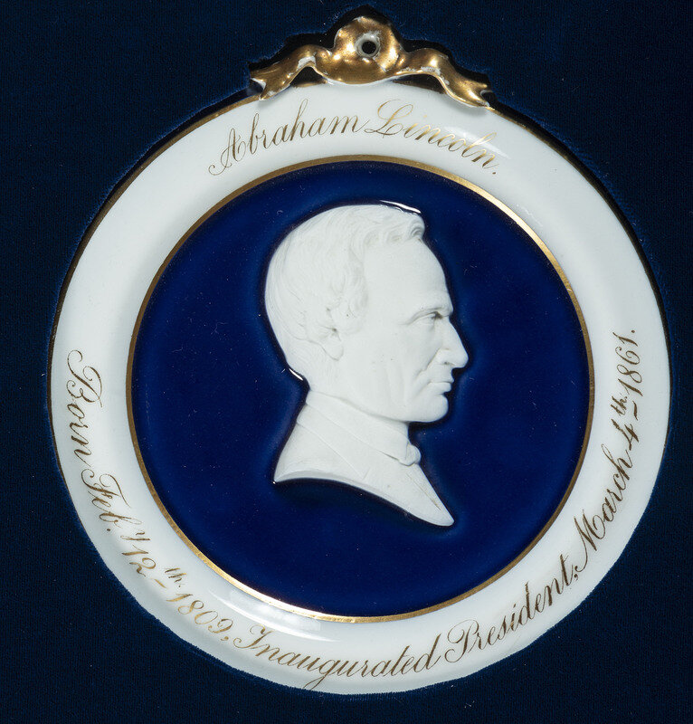 [LINCOLN, Abraham (1809-1865)]. Porcelain bas-relief inaugural wall plaque, ca 1861.