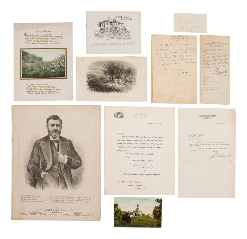 [Also with:] A variety of ephemera such as ""General Grant's Grand March" sheet music, engravings of Grant, a typed letter signed by Grant's grandson Ulysses S. Grant III, and more.