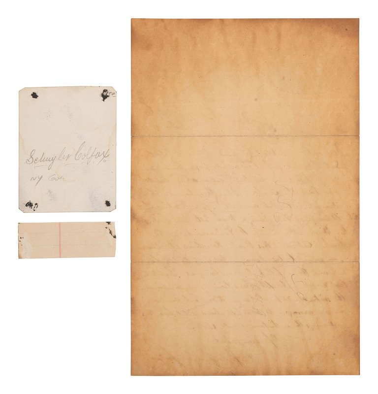 Together, a CDV and autograph letter signed by Schuyler Colfax. Clipped signature accompanying lot appears to be a facsimile.