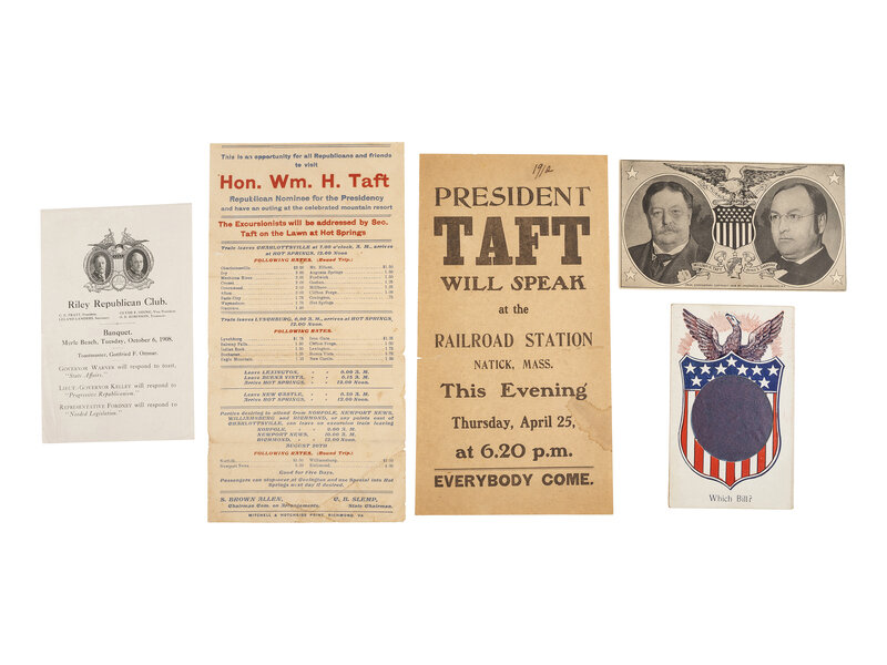 [TAFT, William H. (1857-1930)]. A large group of campaign, inaugural, and presidential ephemera.
