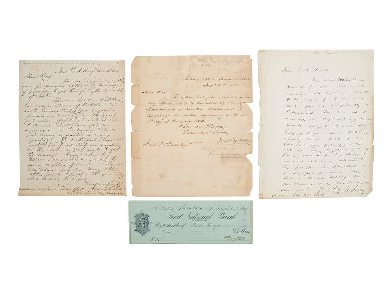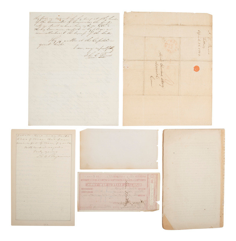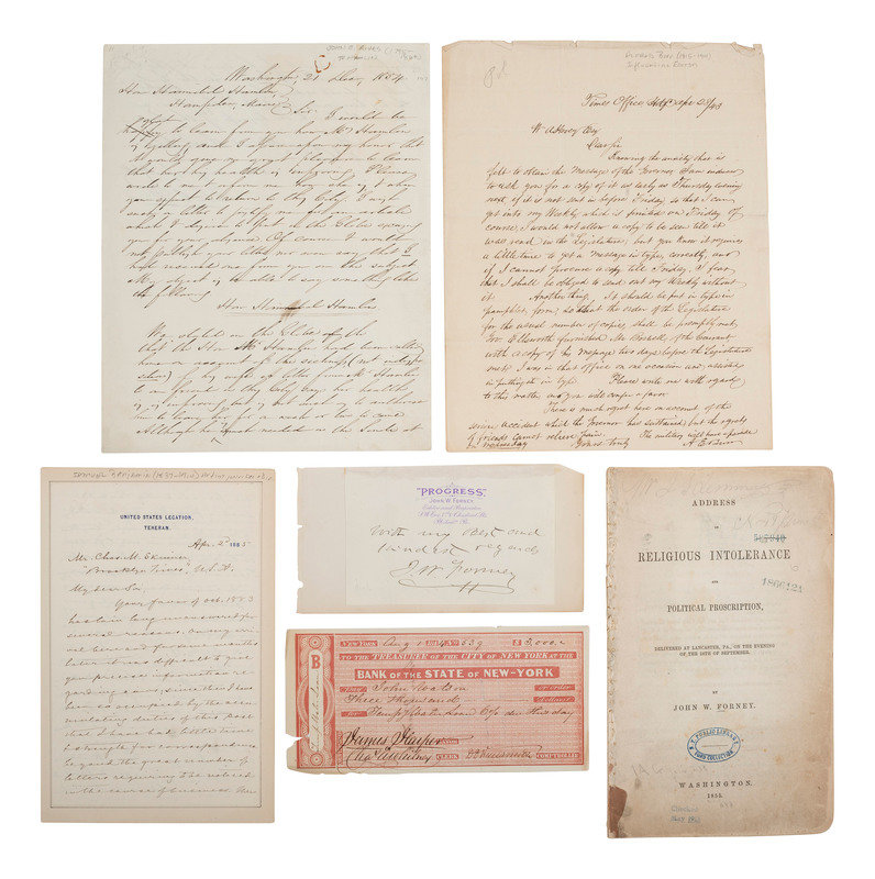 FORNEY, John W. (1817-1881). Newspaper publisher who served as clerk of the United States House of representatives from 1851-1856 and 1860-1861, then as secretary of the US Senate. Founder of the Daily Morning Chronicle, an organ of the Lincoln administration. Letter signed ("Jno W. Forney"), possibly secretarial. "Clerks Office house of Reprs." 31 December 1851. Autograph letter signed ("J.W. Forney") to Congressman E.B. Hart. 22 July 1856. Also with undated note signed ("J.W. Forney").