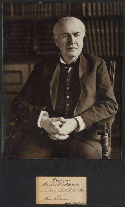 EDISON, Thomas (1847-1931). Clipped signature ("Thos. A Edison"). 4 December 1916.