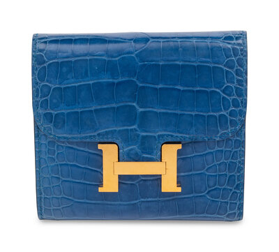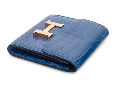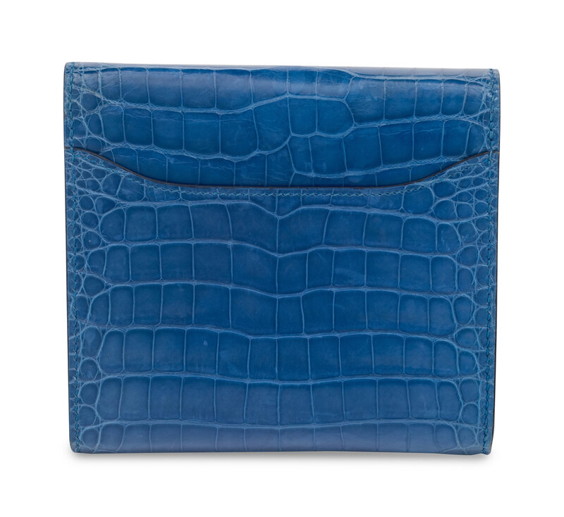 Constance Wallet in Bleu Royal Alligator Skin with Gold-Plated Hardware.
