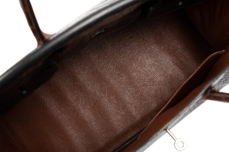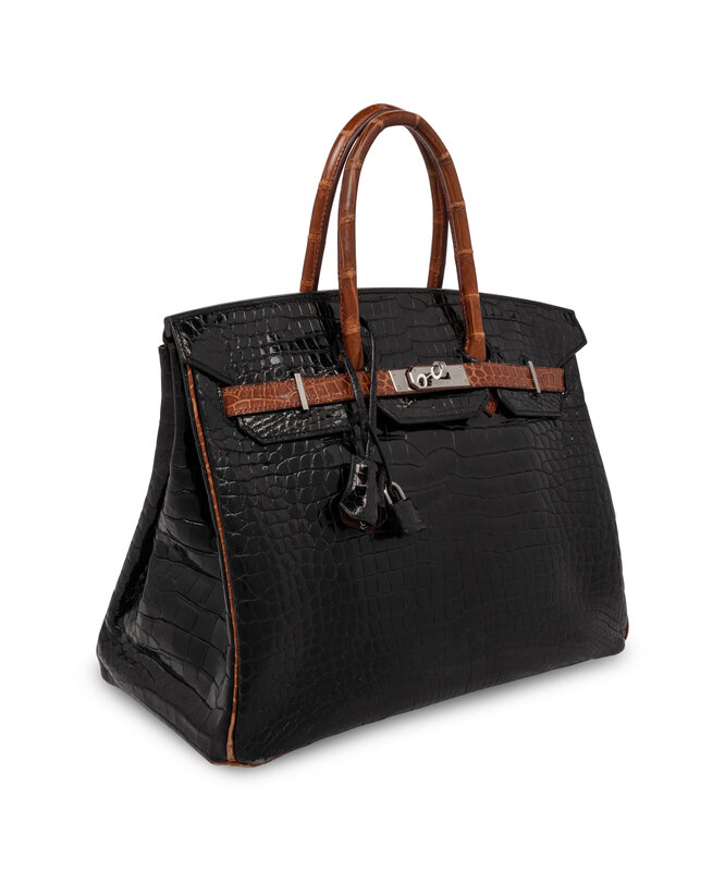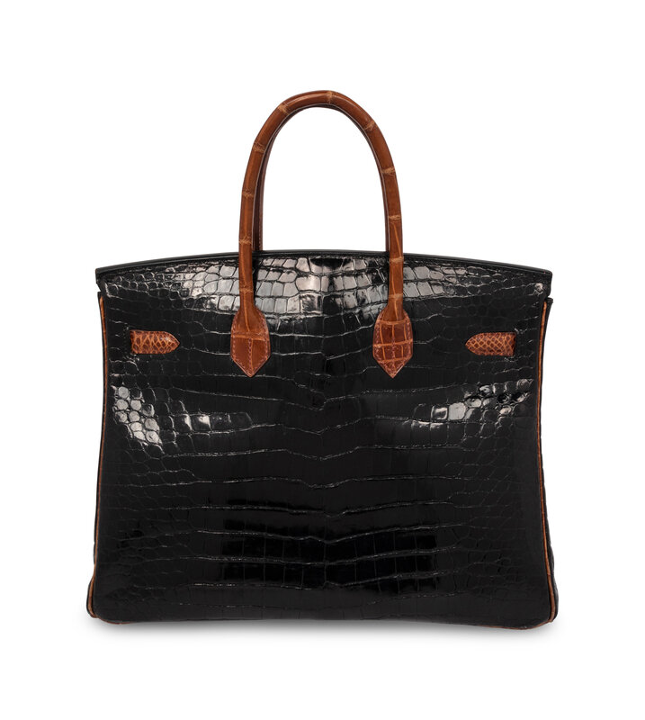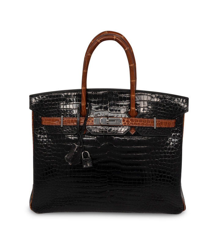 Rare, Birkin 35 in Two-Tone Shiny Porosus Crocodile with Palladium-Plated Hardware.