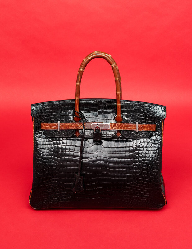 Materials: Crocodile, goatskin, palladium-plated metal