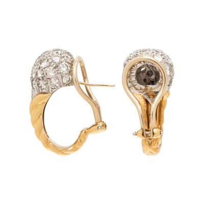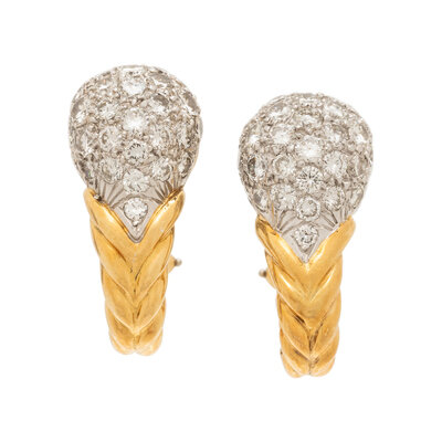 DIAMOND, PLATINUM, AND YELLOW GOLD EARRINGS