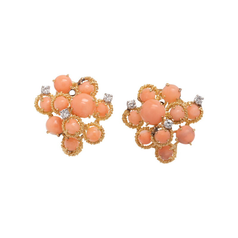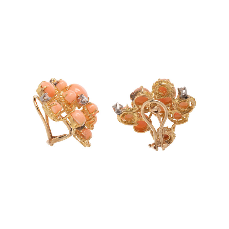 CORAL AND DIAMOND CLIP EARRINGS