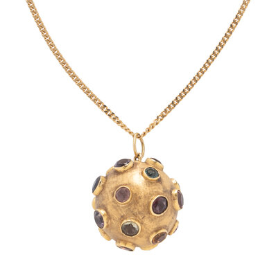 YELLOW GOLD AND MULTIGEM 'SPUTNIK' PENDANT AND CHAIN