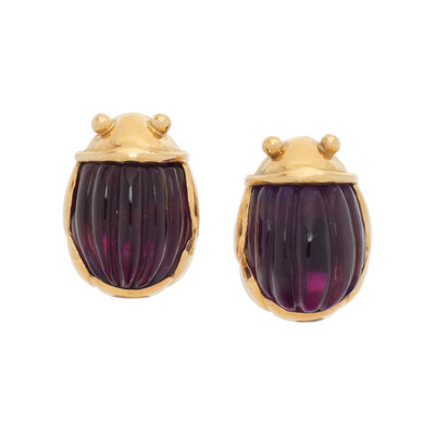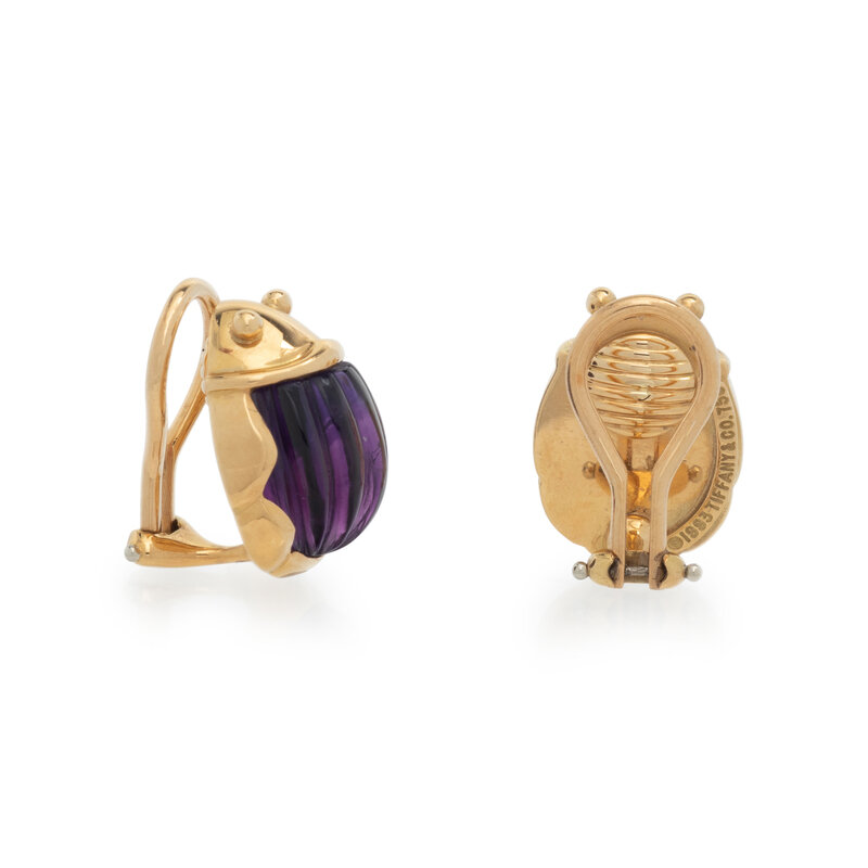 TIFFANY & CO., CARVED AMETHYST SCARAB CLIP EARRINGS
