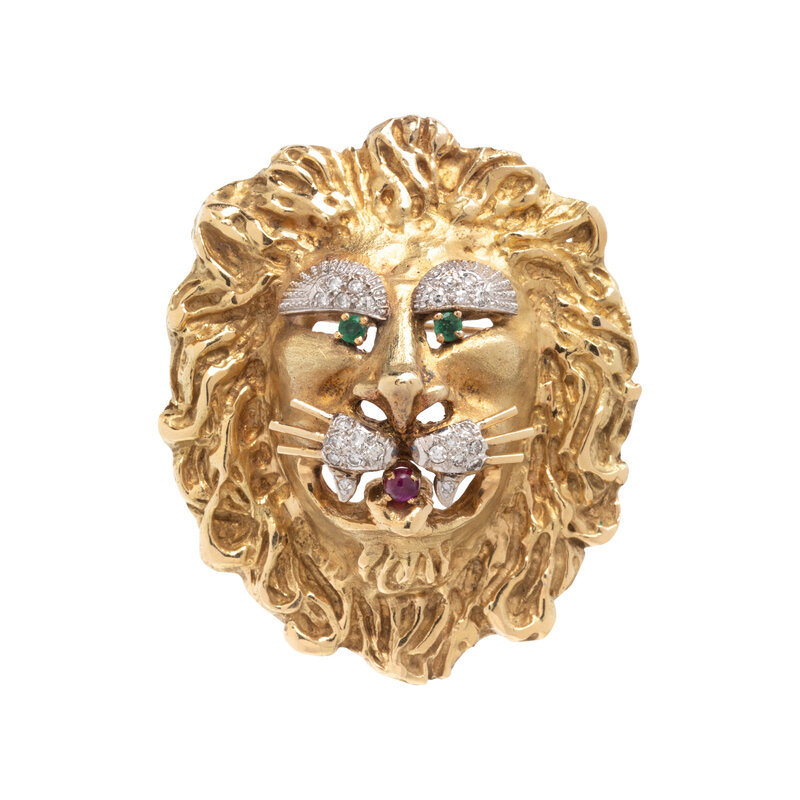 BICOLOR GOLD AND MULTIGEM LION BROOCH