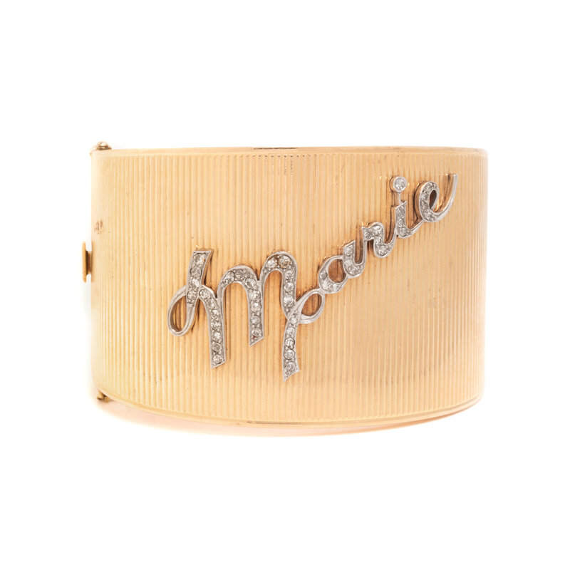 YELLOW GOLD AND DIAMOND ‘MARIE’ HINGED BANGLE BRACELET